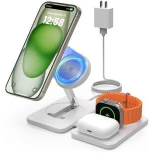 Wireless Charging Station for Mag-Safe Charger: Fast Wireless Charger Pad for iPhone 16/15/14/13/12 Series -Travel Stand for Apple Watch 10-2 - Air-Pods 4/3/2/Pro
