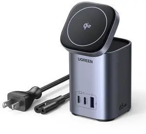 65W GaN USB C Charging Station Stand Foldable, 3-Port Desktop Charger with 15W Qi2 MagSafe Wireless Charging Stand for iPhone 17/16/15/14/13/12, Galaxy S25/S24, Pixel 10/9, iPad Air