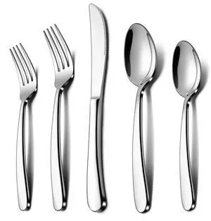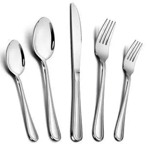 60-Piece Silverware Set, E-far Stainless Steel Flatware Cutlery Set Service for 12, Metal Tableware Eating Utensil Set, Dinner Knives/Forks/Spoons, Scalloped Edge & Mirror Polished - Dishwasher Safe