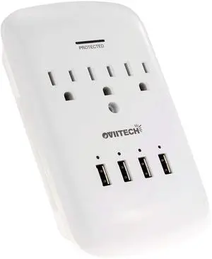 Multi Outlet Wall Mount Adapter Surge Protector with 4 (4.2 AMP) USB Charging Ports,3 Outlet Extender Socket Plugs,White,ETL Certified.