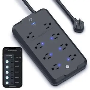 Surge Ultra Smart 8-Outlet Surge Protector 6 Smart Outlets, 2 Always-On Outlets, 6 ft Cord, WiFi & Voice Control with Alexa/Google, 1200 Joules Protection, No Hub, Black
