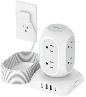 Tower Power Bars with Surge Protector USB, Flat Plug Extension Cord 10 Ft with 8 AC Multiple Outlets and 4 USB Ports (1 USB C), 1050J Power Strip Desk Charging Station for Home Office Dorm Room