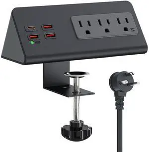 Nightstand Charging Station with PD 20W USB C, Nightstand Edge Power Strip with 3 AC Outlets, 4 Fast Charging USB Ports, Connect 6.56FT Flat Plug, Desk Surge Protector for Office Home Hotel, Black