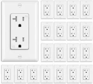 20 Pack 20 Amp Decor Wall Receptacle Outlet, 20A Tamper-Resistant (TR) Electrical Outlet with Wallplate, Residential and Commercial Use, White