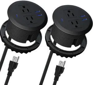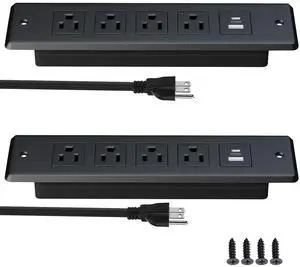 2 PCS Furniture Recessed Power Strip,20W USB C Fast Charging Station,Flush Mount Desk Oulte with 2 USB Ports,4 AC Outlets,6 ft Extension Cord,Black