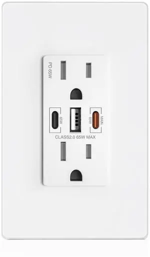 USB Wall Outlet, 65W GaN USB Outlet Receptacles with 3 USB Ports,15 Amp Tamper-Resistant Electrical Outlet with 1 Type A&2 Type C,Screwless Wall Plate Included,UL Listed