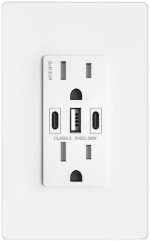 USB Outlet, Type C Wall Outlet with 30W Power Delivery 3.0, 15A Quick Charging Outlet with USB Ports, Screwless Wallplate Included, UL Listed, 5 Pack, White
