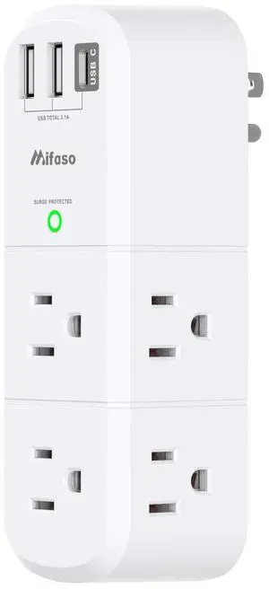 Outlet Extender with Rotating Plug, Mifaso Surge Protector 6 AC Multi Plug Wall Outlets and 3 USB Ports, 1800 Joules, 3-Sided Swivel Power Strip Spaced Splitter for Home, Travel, Dorm Room Essentials