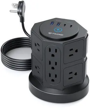 Surge Protector Power Strip Tower with 5 USB Ports and Night Light, 10FT Extension Cord with 12 AC Multiple Outlets, Power Tower, Overload Protection for Home Office Dorm Room (Black)