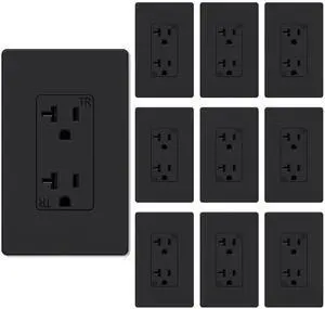 20 Amp Decorator Wall Outlet, Tamper Resistant Duplex Receptacle Outlet, Includ Screwless Electrical Outlet Plate, 20A 125V 2 Pole 3 Wire, Self-Grounding, ETL Listed, Matte Black, 10 Pack