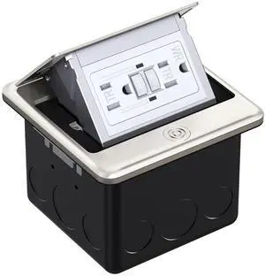 Pop Up Floor Outlet Covers Box with 15 Amp Stainless Steel GFCI Tamper Resistant Rceptacle Outlet, ETL Listed, Brushed Nickel