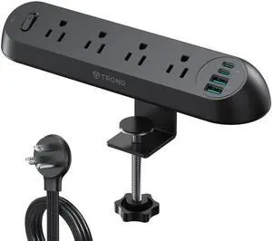 Desk Clamp Power Strip USB C PD 20W - Flat Plug 10ft Extension Cord, Surge Protector with 4 AC Outlets 4 USB Ports, 1700J, ETL Listed, Fits 1.97 inch Tabletop Edge, for Home Office, Black