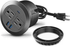 3 1/8 inch Desk Power Grommet Outlet, Recessed Power Strip Socket with 2 USB, PD Fast Charging USB-C 2 AC Plug, Power Station Center for Furniture Conference Room Office Kitchen Table Black