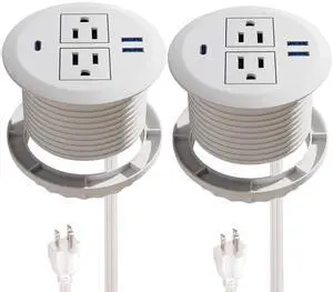 2 Pack Recessed Power Grommet 3 Inch,20W Fast Charging USB C.Fadossu Desktop Flush-Mount Power Grommet Outlet with 2-AC Outlet,3-USB Port,Fit 3-1/8" Round Desk Grommet Hole,6.56FT Cord,White