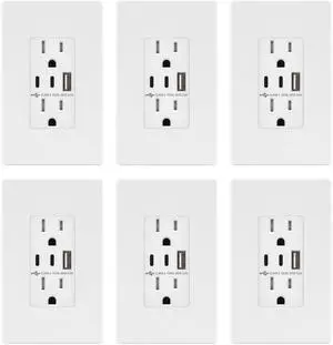 USB Outlet, Type C Wall Outlet with 30W Power Delivery 3.0, 15A Quick Charging Outlet with USB Ports, Screwless Wallplate Included, UL Listed, 5 Pack, White