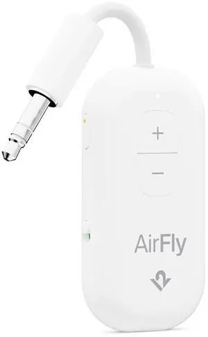 Bluetooth 5.3 Airplane Adapter, Rotary Volume, aptX Low Latency & Adaptive, 25 Hrs, Use with Any 3.5mm Jack on Airplanes, TVs, Car, Gym, Ideal for AirPods, Headphones and More, White