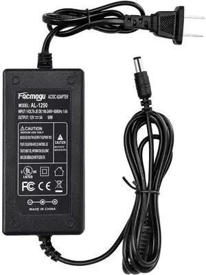 12V 5Amp Power Supply Adapter, AC 100-240V to DC 12Vdc 5A 3.5A 3A 2A 1A Replacement Power Cord Converter for LED Strip Light DVD Player CCTV Security Camera Sceptre Onn HP Dell AOC Monitor