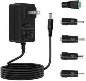 12V 2A 1.5A 0.5A Power Adapter 100V-240V 12 Volts Power Supply Cord AC to DC with 5 Selectable Plugs, DC12V Transformer for LED Strip Light, CCTV Camera, BT Speaker, GPS, Webcam, Router.