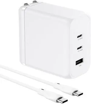 100W Smart GaN PD Charger, 6.6ft/2m 100W E-Mark Cable, 3 Ports (2 USB-C, 1 USB-A), Compatible with MacBook Pro, Pixelbook, ThinkPad, XPS, iPad Pro, Samsung S25 Ultra, iPhone 16 Pro & More
