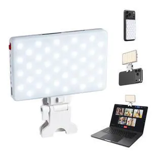 M3 Magnetic Selfie Phone Light with Clip, 120 LEDs 2000mAh Rechargeable, 2700K-6500K, Portable Content Creators Fill Light for Video Recording, for iPhone/Laptop/Camera/Webcam (White) - 5640
