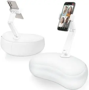 Pillow Phone Holder for Bed, 360° Bed Phone Holder Laying Down, Hands-Free iPhone Stand for Bed/Sofa/Lap, Compatible w/ 4.7"-7.0" Cell Phones, Flexible Dual Arm with Microbead Cushion