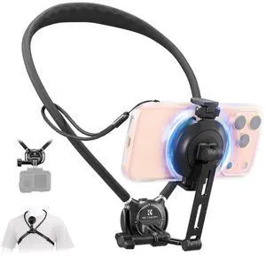 Magnetic Neck Mount for Phones and Cameras, Hands Free POV Phone Holder Neck Tripod Chest Strap Selfie Mount, Neck Phone Holder for Recording Compatible with Go Pro and i Phone 16 15 14 13 12