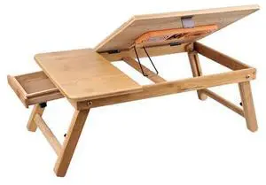 Laptop Desk Adjustable Bamboo Laptop Table with Fan Drawer Foldable Bed Tray Breakfast Tray Padded Lap Work Tray,for Working Writing Drawing