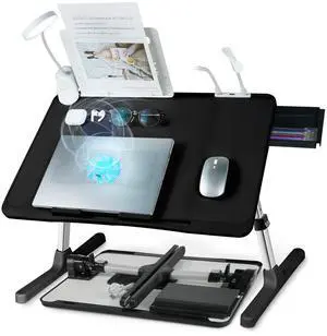 Laptop Lap Desk with Cooling Fan - Adjustable with Light, USB, Storage Drawer - Folding Bed Desk,23.62"*15.74",Black
