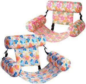 Sloosh Pool Floats Chairs Adult, 2 Packs Inflatable Pool Lounge Chairs,Blow up Hammock Pool Noodles Floats for Adults,Flower Pattern Floating Water Chair for Pool Lake River(Tropical Flowers)