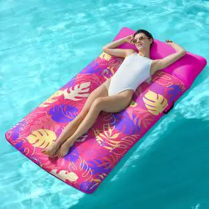 SLOOSH Inflatable Pool Floats Raft - XL Fabric Covered Pool Mat Lounger Floaties for Adults, Ultra Comfort Inflatable Water Float with Headrest for Beach Lake Swimming Pool Floating 68"X34" (Pink)
