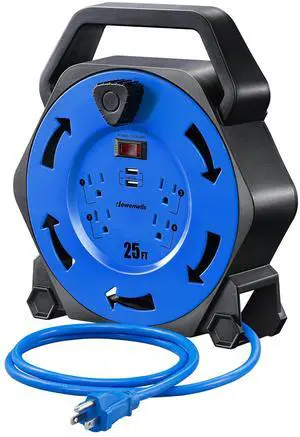 Features: This 25FT power extension cord is made by DEWENWILS and features a Solid-color plug tail style with material. It supports a voltage of 125 volts and an input current of . The cable is Yellow in color and is UL listed. It comes with a Male-to-Female connector and does not require batteries.