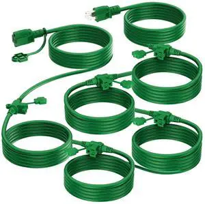 Features: This 52FT(34+6*3) power extension cord is made by DEWENWILS and features a 1 to 3 Splitter style with pvc material. It supports a voltage of 125 volts and an input current of . The cable is Green in color and is UL listed. It comes with a Male-to-Female connector and does not require batteries.