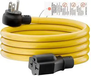Features: This 6FT power extension cord is made by Plugrand and features a Down Angle style with copper material. It supports a voltage of 125 volts and an input current of . The cable is Yellow in color and is UL listed. It comes with a Male-to-Female connector and does not require batteries.