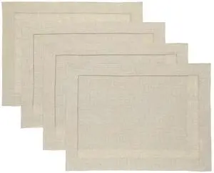 Solino Home Linen Placemats Set of 4 - Classic Hemstitch Natural Placemats 14 x 19 Inch - 100% Pure Linen Table Mats for Spring, Summer, Mothers Day