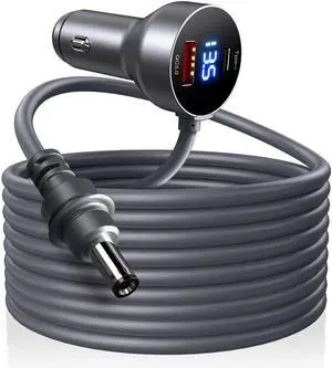 Car Charger Cable for Starlink Mini 16.5FT/5M with Display - 60W DC + 33W Dual USB-C/USB-A Power Adapter for Trucks, RVs & Boats, 12-24V Aluminum 18AWG Cord with Real-Time Voltage Monitoring