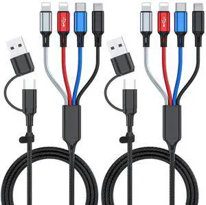 5 in 1 Multi Charging Cable 3.5A, Multi Fast Charging Cord USB A/C to Type C/Micro USB/Lightning Braided Universal Muliple Charger Cable,Multi Chargers for Cell Phones,iPhone 17 16,Galaxy (2Pack,4Ft)