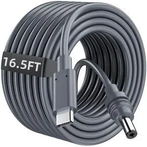 Starlink Mini USB C to DC Power Cable, 16.5FT / 5M, 100W Input, Waterproof, Grey, for Starlink MINI