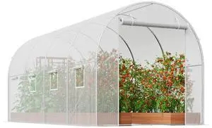 Walk-in Tunnel Greenhouse, 14.6x6.4x6.3 ft Hoop House Greenhouse Tunnel, Plant Hot House with Galvanized Steel Frame, White PE Cover, Roll-up Zipper Door and 8 Windows for Outdoor
