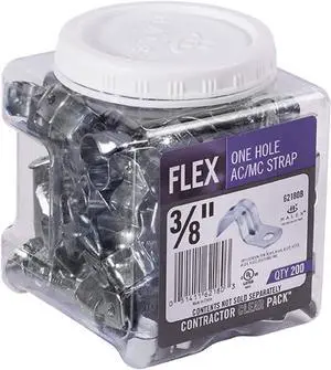 Halex 3/8 Inch Flexible Metal Conduit (FMC) 1 Hole Straps 62180B 200 Per Pack Silver