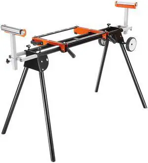 VEVOR Miter Saw Stand, 550lbs Load Capacity Steel Collapsible Stand for Miter Saw with One-piece Mounting Brackets Clamps, Adjustable Height and Length, Portable Compact and Folding Miter Saw Stand