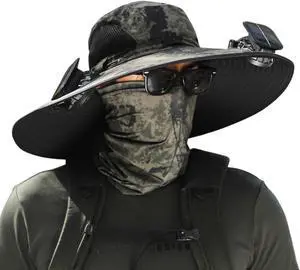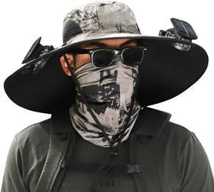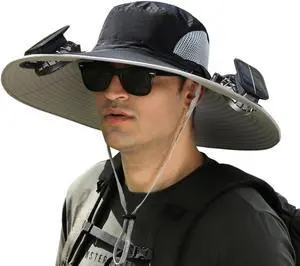 Wide Brim Solar Fan Outdoor Fishing Hat-Solar & USB Charging, Sunscreen Sun Hat with Fan, Solar Fan Hat Upf50+