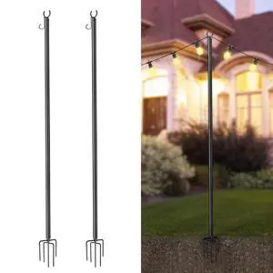 10 Ft String Light Pole Outdoor Metal Pole Aluminum with Side Hooks Patio Backyard Party 4 Pack