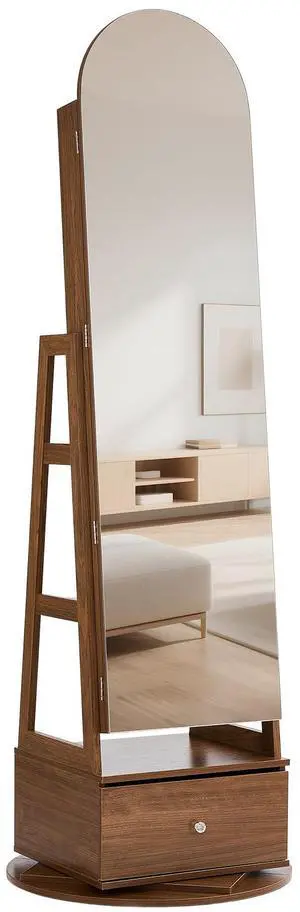 360° Swivel Jewelry Cabinet, 65.1-inch Tall, Full-Length Mirror with Storage, Standing Rotatable Jewelry Armoire Organizer, Lockable with 2 Keys, Accessory Pouches, Storage Shelves and Drawer
