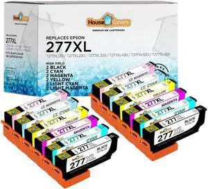 Houseoftoners Remanufactured for Epson 277XL Ink Cartridge High Yield Replacement for Epson 277XL Expression XP-850 XP-860 XP-950 XP-960 XP-970 (2B/2C/2M/2Y/2-Lt. Cyan/2-Lt. Magenta, 12PK)