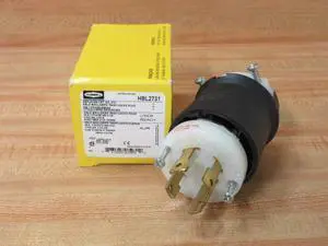 Hubbell HBL2721 Locking Plug, 30 amp, 3 Phase, 250V, L15-30P, Black and White