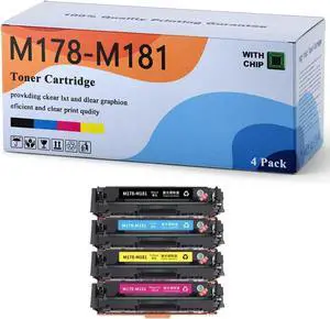 Compatible M178-M181 Toner Replacement Cartridges for HP Color Laserjet MFP M178-M181 Printers (4 Pack Color CMYK)