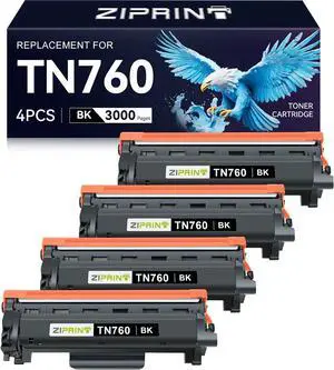 ZIPRINT TN760 Toner Cartridges Compatible Replacement for Brother TN760 TN-730 TN730 for MFC-L2710DW MFC-L2750DW DCP-L2550DW HL-L2350DW HL-L2395DW HL-L2370DW (Black, 4 Pack)