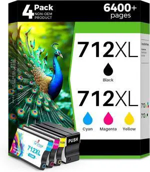 712XL 712 Remanufactured Ink Cartridges Replacement for HP 712XL 712 Ink Cartridges Work with DesignJet T210 T230 T250 T630 T650 Printers (80ML for BK,29ML for C/M/Y)