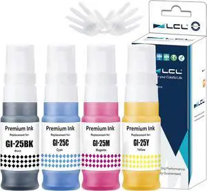 LCL Compatible for GI25 GI-25 BK GI-25BK GI-25C GI-25M GI-25Y High-Yield Ink Bottle Replacement MAXIFY GX2020 GX1020 Printers (Black Cyan Magenta Yellow)