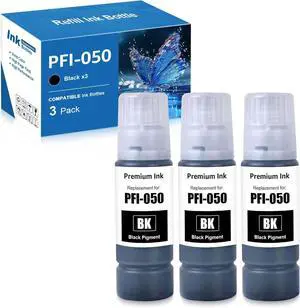 Compatible PFI050 Ink Bottle Replacement for PFI-050 PFI-050BK Pigment Ink Cartridge for ImagePrograf TC-20 TC-20M Printer(3 Black)